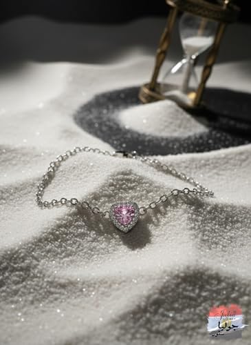 Julia Store - سوار من الستانلس ستيل مطلي بالذهب الابيض عيار 18 قيراط على شكل هالة على شكل قلب عصري من جوليا ستور، تصميم جمالي فاخر مرصع بالزركونيا المكعب الزهري 2 قيراط، سوار زفاف للذكرى السنوية وعيد الحب، هدايا