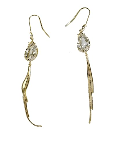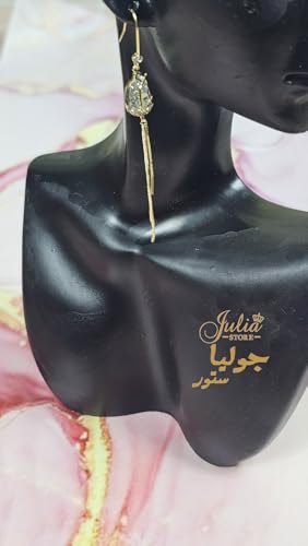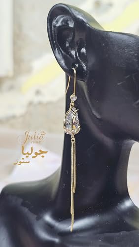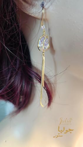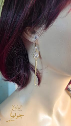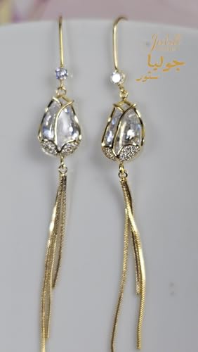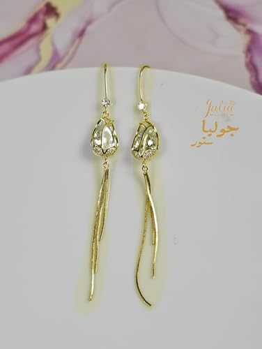 Julia Store - اقراط تشايمز مطلية بالذهب الاصفر عيار 18 قيراط للنساء من جوليا ستور متدلية بسلسلة طويلة الكريستال بلون ذهبي والفتيات