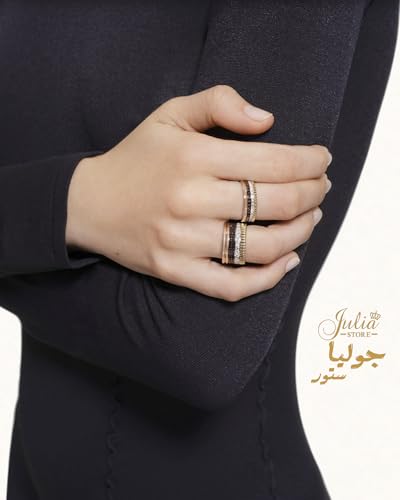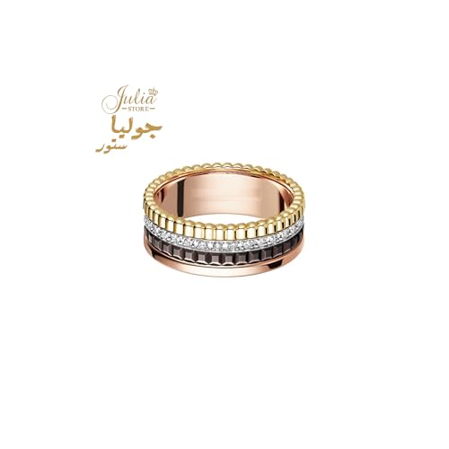 Julia Store - دبلة خطوبة كوارت كلاسيك للحب الأبدي، خاتم زواج مطلي بالذهب الأصفر والوردي والأبيض عيار 18 قيراط من الفولاذ المقاوم للصدأ 8 ملم، مجوهرات زركونيا مكعبة نمساوية تشبه الألماس من جوليا ستور