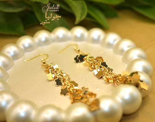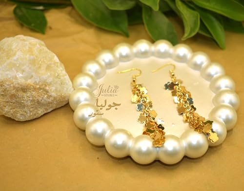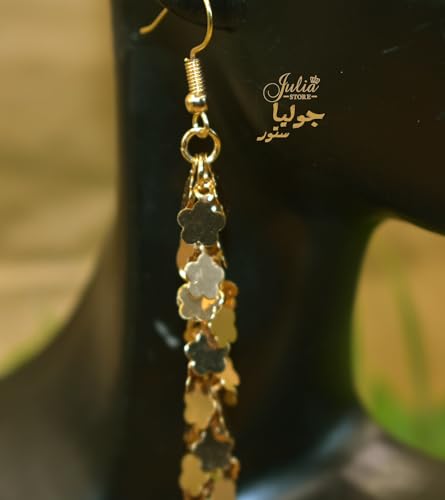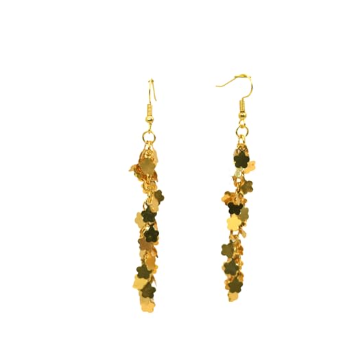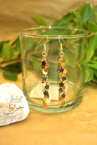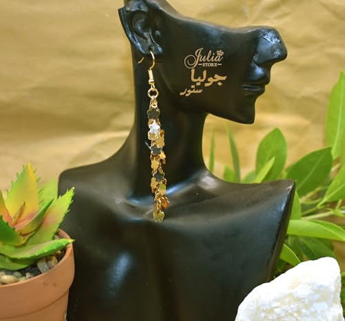 Julia Store - حلقان معدنية بشراشيب على شكل ورقة شجر مطلية بالذهب عيار 21 قيراط للنساء من جوليا ستور، حلقان عصرية أنيقة مصنوعة يدويًا بنمط بوهو خفيفة الوزن للغاية متدلية، حلقان متدلية، هدية مجوهرات
