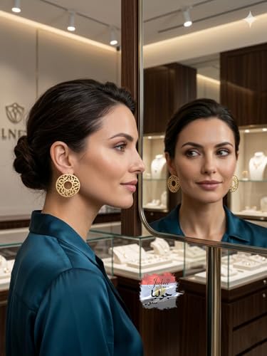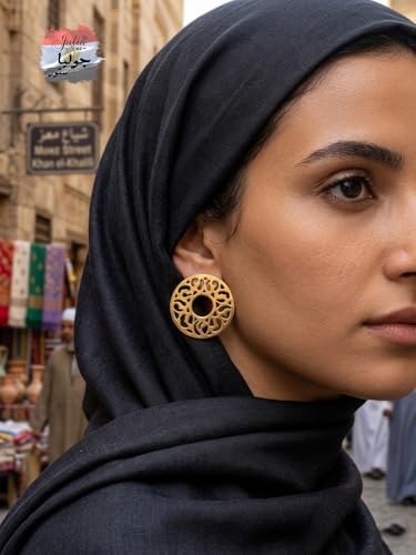 Julia Store - أقراط متدلية مطلية بالذهب عيار 21 قيراط بتصميم شرقي تقليدي مصري عربي مسلم مجوف للنساء والفتيات هدية من جوليا ستور