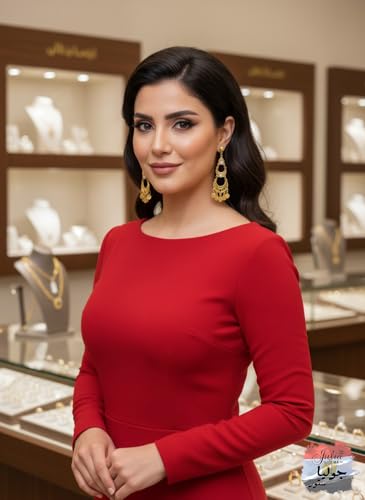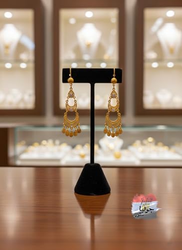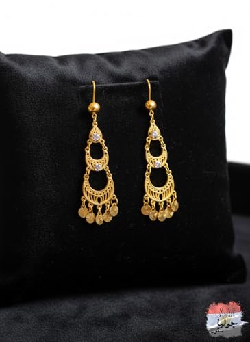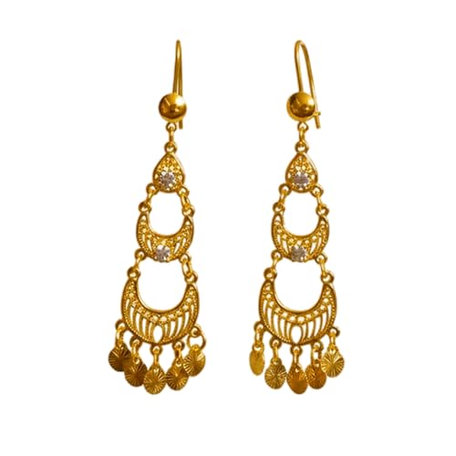 Julia Store - اقراط متدلية عصرية فاخرة مطلية بالذهب عيار 21 قيراط من جوليا ستور، اقراط حلقية مجوفة بتصميم شرقي تقليدي عتيق وشرقي عتيق للنساء والفتيات