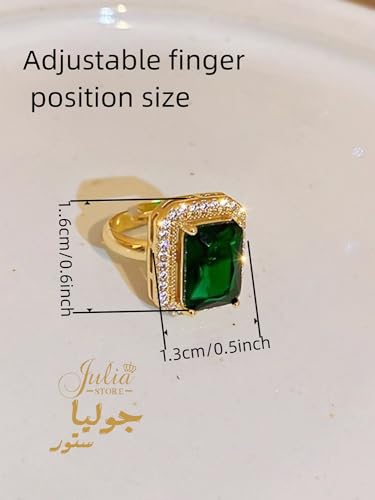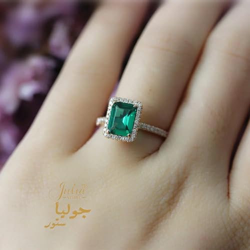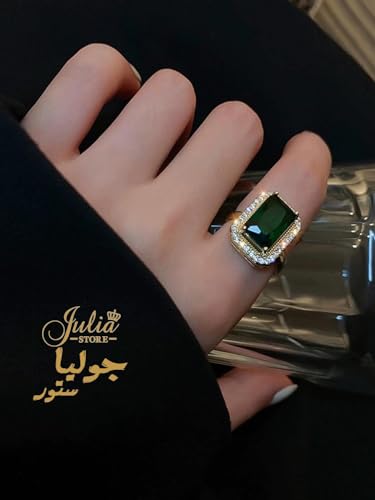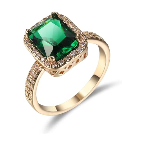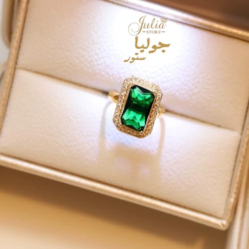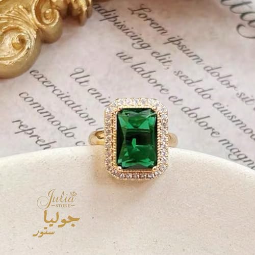 Julia Store - خاتم خطوبة مطلي بالذهب عيار 18 قيراط للنساء من جوليا ستور، خواتم زفاف بسيطة من الزمرد الأخضر عيار 18 قيراط للنساء مقاس واحد