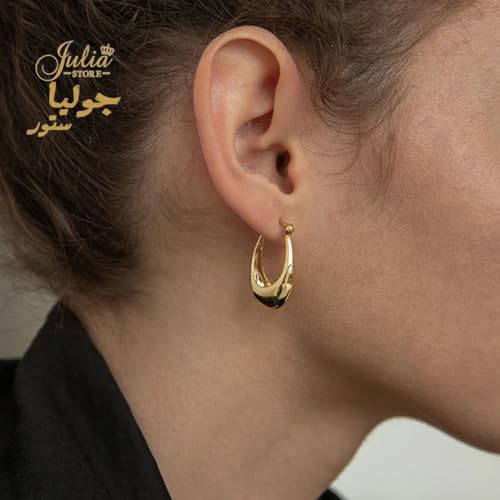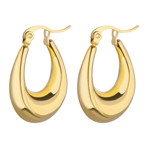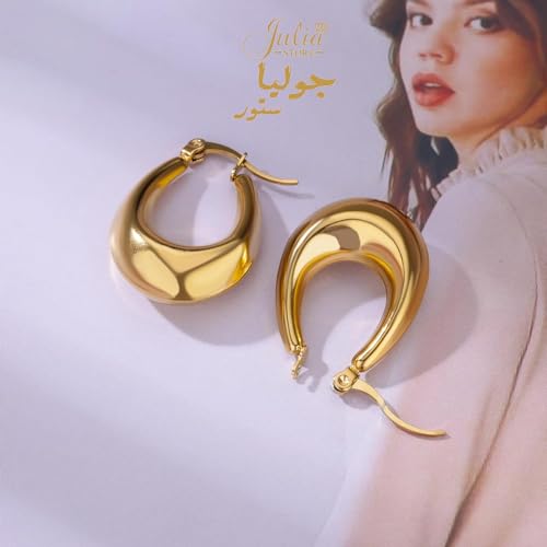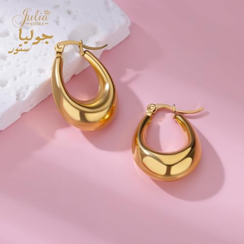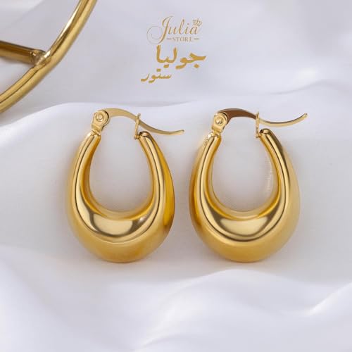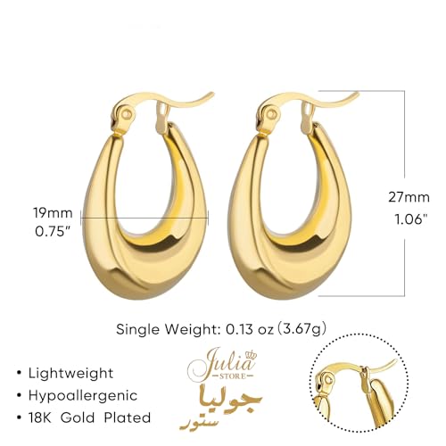 Julia Store - أقراط حلقية ذهبية مكتنزة للنساء من الستانلس ستيل المطلي بالذهب عيار 18 قيراط، أقراط حلقية دائرية / بيضاوية مضادة للحساسية، أقراط حلقية سميكة وخفيفة الوزن من جوليا ستور