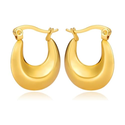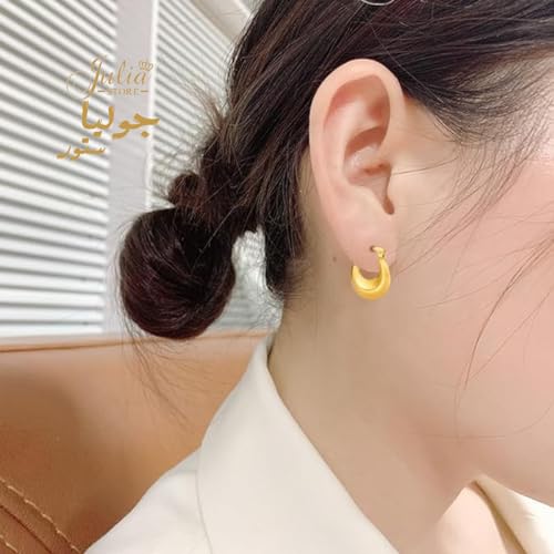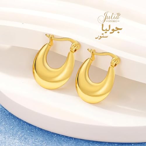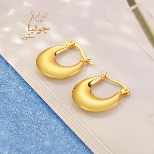Julia Store - اقراط حلقية ذهبية كبيرة خفيفة الوزن من الستانلس ستيل مطلية بالذهب الحقيقي عيار 14 قيراط لا تسبب الحساسية للنساء جوليا ستور