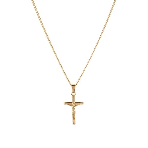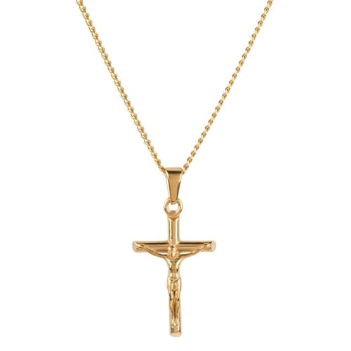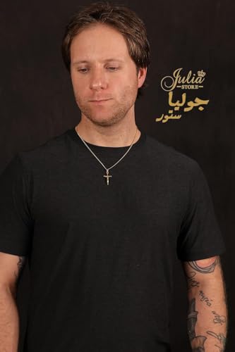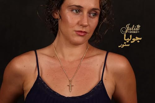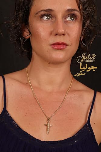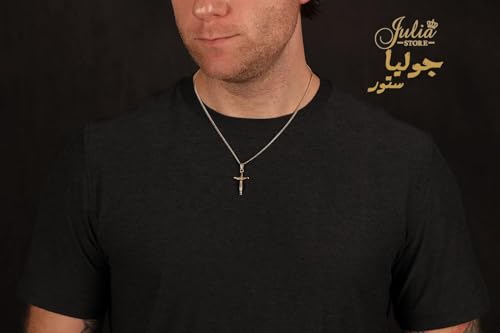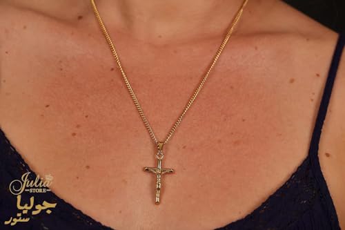 Julia Store - سلسلة صليب مطلية بالذهب عيار 18 قيراط من الستانلس ستيل 316L 3 ملم مع دلاية على شكل جوليا ستور للبالغين الجنسين