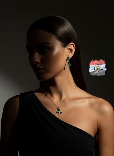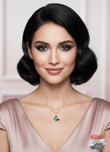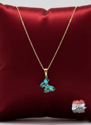 Julia Store - عقد انيق على شكل فراشة من جوليا ستور مصنوع الستانلس ستيل المطلي بالذهب عيار 18 قيراط ومرصع بالزركونيا المكعب باللون الاخضر قلادة كريستالية لطيفة هدايا للبنات والنساء