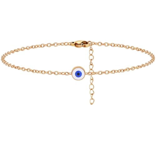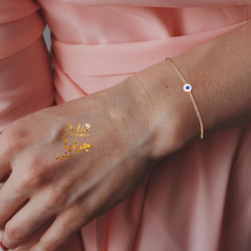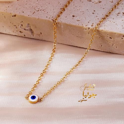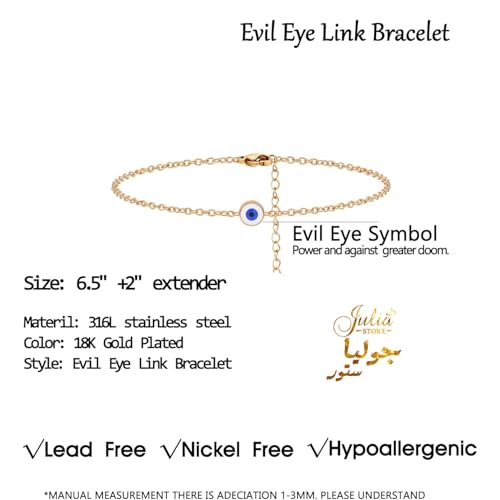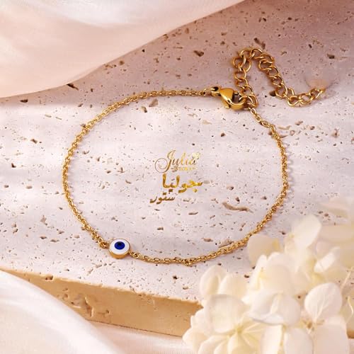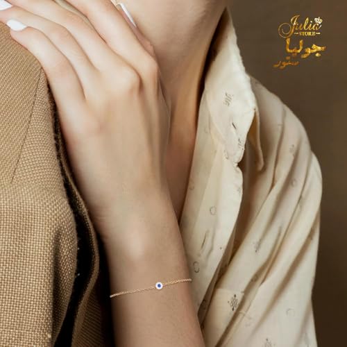 Julia Store - اساور ذهبية انيقة للنساء من جوليا ستور مصنوعة الستانلس ستيل المطلي بالذهب عيار 18 قيراط سوار عصري فاخر للمشاهير بتصميم بسيط ولامع عين الحسد للحظ هدية مجوهرات للبنات