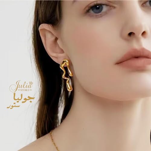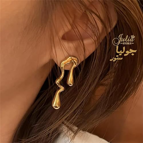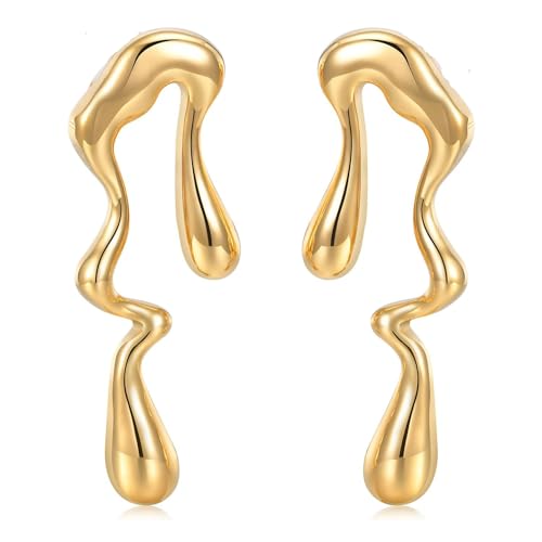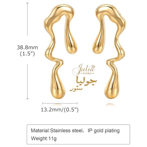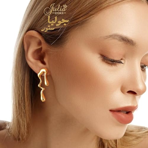 Julia Store - أقراط متدلية غير منتظمة على شكل قطرة ماء متطابقة من المعدن السائل اقراط سميكة متماثلة الستانلس ستيل مضادة للحساسية مطلية بالذهب عيار 18 قيراط للنساء جوليا ستور