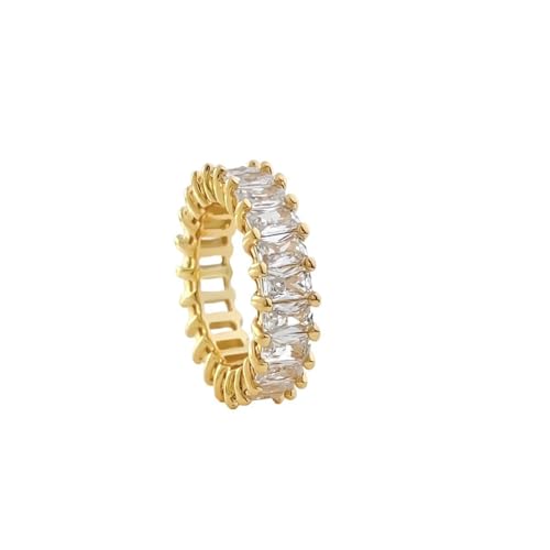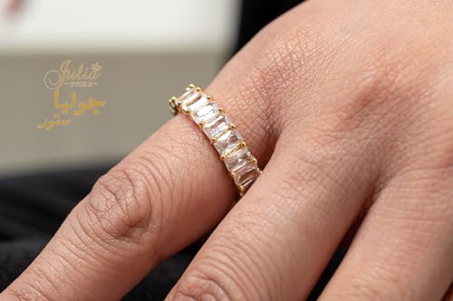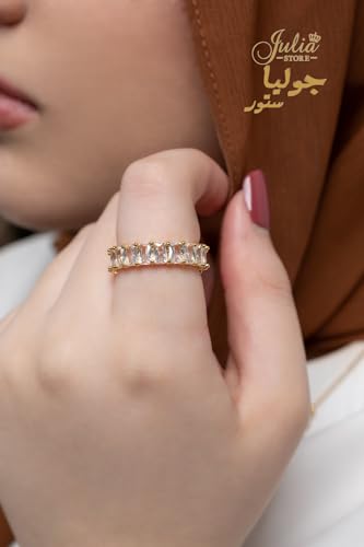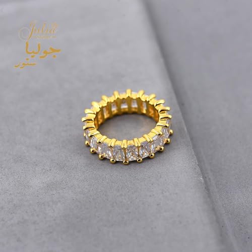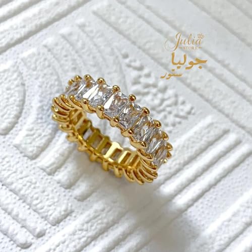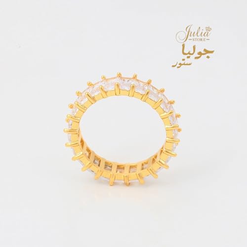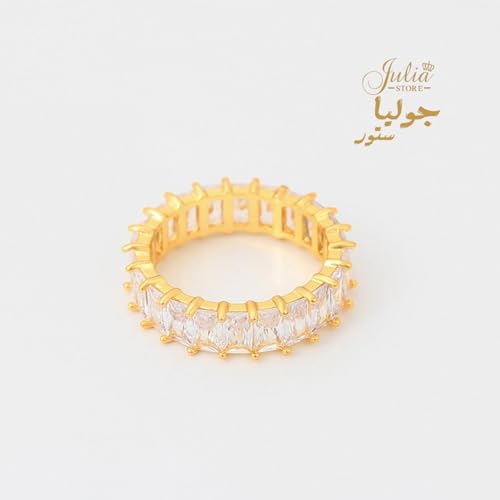 Julia Store - خاتم زفاف من الستانلس ستيل مطلي بالذهب عيار 18 قيراط ومرصع بالزركونيا المكعب باحجار كريمة جوليا ستور US9 للنساء