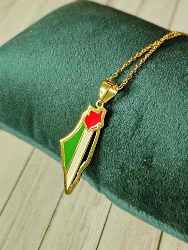 Julia Store - عقد بقلادة على شكل خريطة فلسطين للرجال والنساء من الستانلس ستيل المطلي بالذهب عيار 21 قيراط فاخر لا يسبب الحساسية جوليا ستور