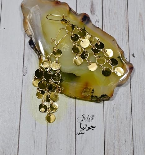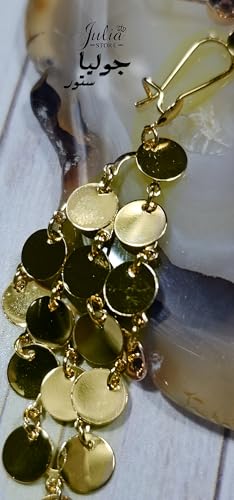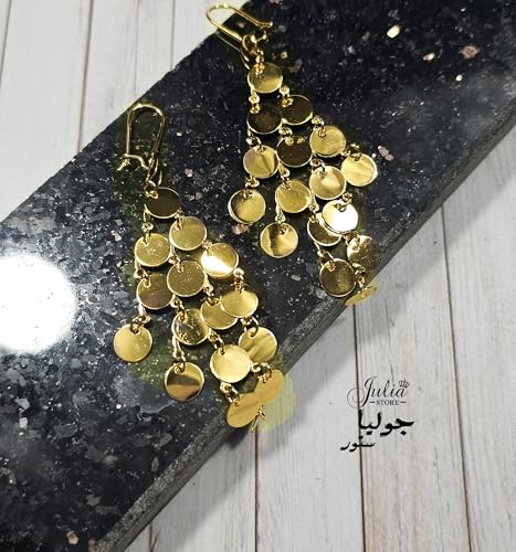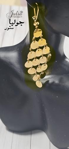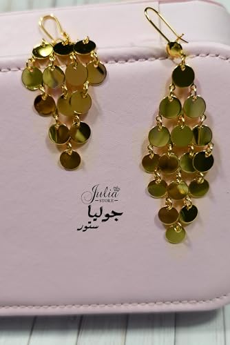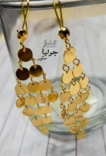 Julia Store - اقراط متدلية متدلية من المعدن مزينة بالترتر مزينة بالترتر للنساء مطلية بالذهب عيار 18 قيراط من جوليا ستور
