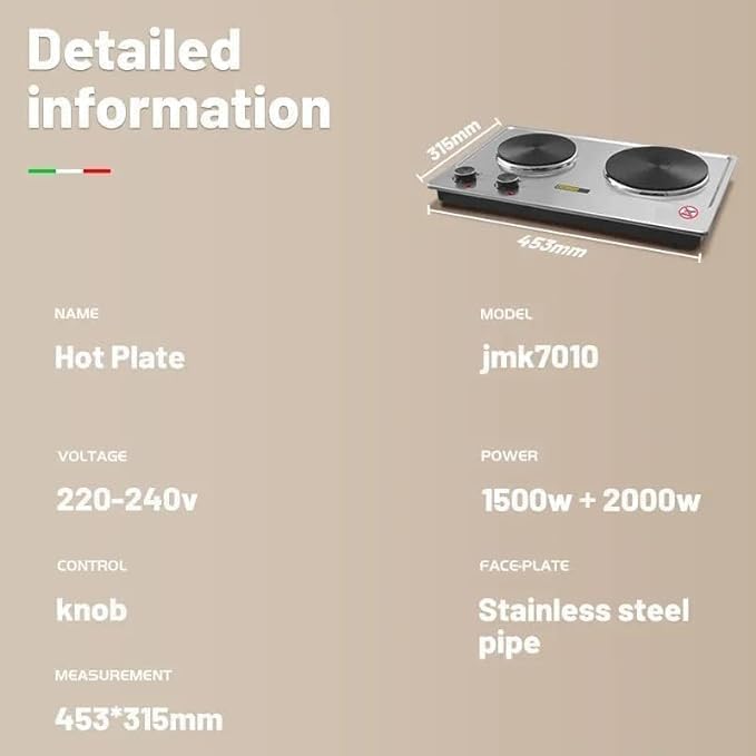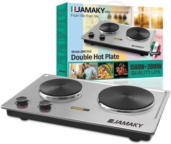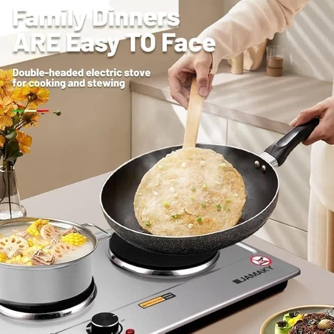 Generic - بوتاجاز كهربائي مسطح بـ 2 عين من جوماكي، بقوة 1500+ 2000 وات، لون فضي
