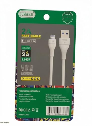 Generic - JUMANJI كابل شحن USB متوافق مع iPhone، طول 1000 ملم، 2 أمبير، موديل JJ-107، شحن سريع
