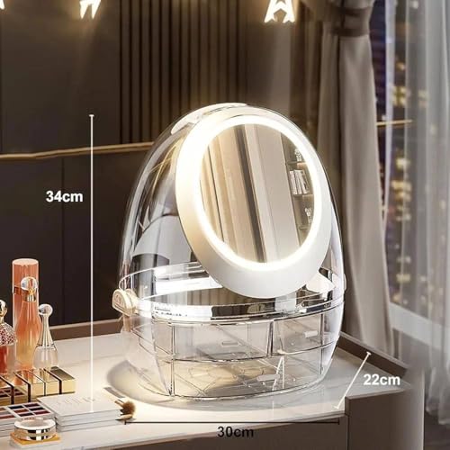 Generic - منظم ميك أب أكريليك شفاف جامبو بمراية دوارة و3 أدراج؛ منظم تجميل كريستال فخم لتخزين أدوات المكياج والإكسسوارات؛ تصميم أنيق للديكور العصري