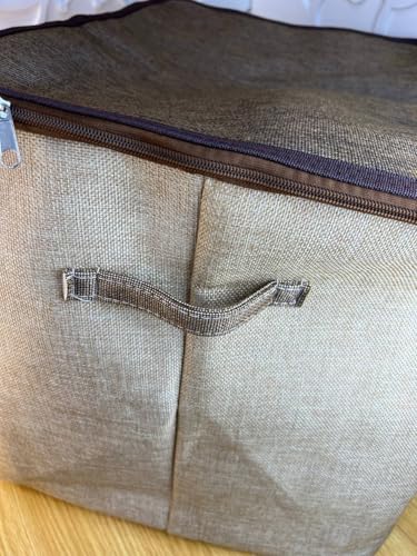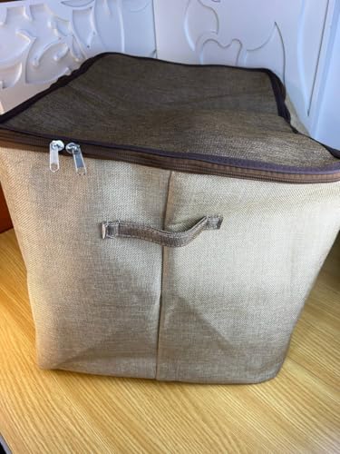 Generic - باسكت غسيل وتخزين جامبو بغطاء وسوستة – قماش كتان متين مبطن – 55×40×40 سم – مستورد بجودة عالية – متوفر بـ3 ألوان