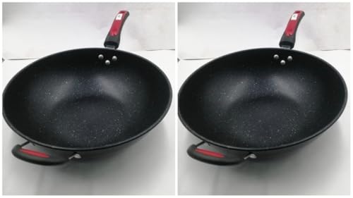 Generic - طاسة ووك جامبو مقاومة للالتصاق وشديدة التحمل مطلية بالتفلون مقاس 32 سم، عميقة متعددة الأغراض للقلي السريع والقلي والسوتيه والطبخ العائلي، متينة وسهلة التنظيف (عبوة من قطعتين)