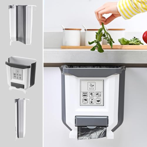 Generic - سلة مهملات جامبو لدولاب المطبخ من السيليكون بتصميم يثبت على الباب الدوار سلة مخلفات للمطبخ متعددة الاستخدامات مع درج موزع أكياس مدمج وحامل تخزين، سلة مخلفات بلاستيكية متحركة للمطبخ والحمام