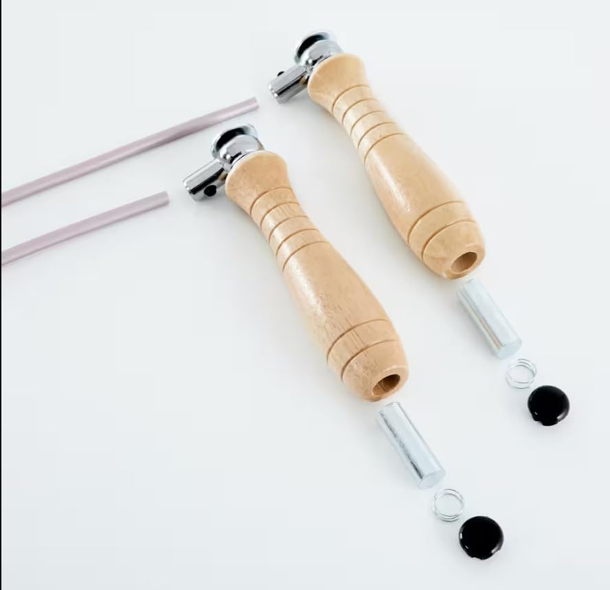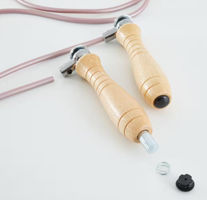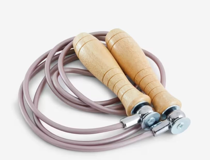 - تصميم فاخر: تتميز بمقابض خشبية ناعمة مع قبضة مريحة وسلك متين بلون بنفسجي فاتح لجلسات تمرين مريحة وطويلة