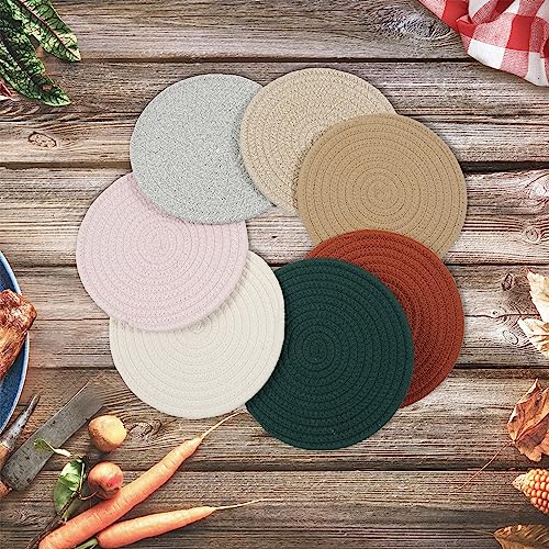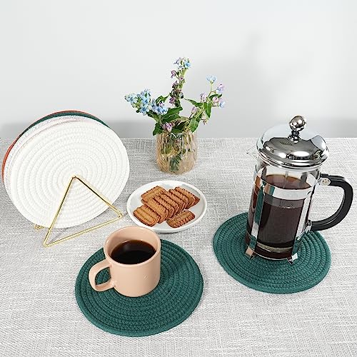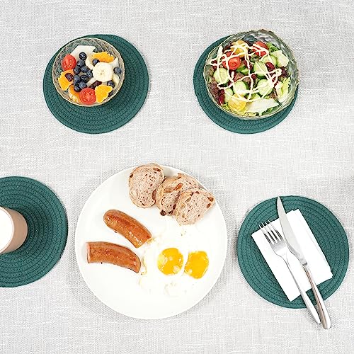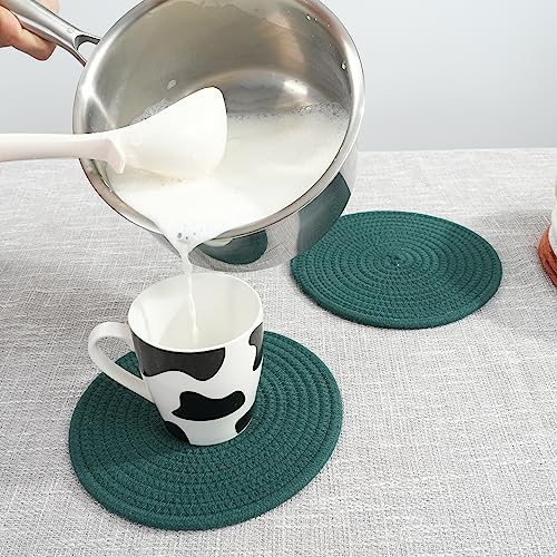 JUNBOLE - مجموعة حوامل أواني، قواعد أكواب لسطح الطاولة، قاعدة للأواني الساخنة، حوامل أواني قطن للأطباق الساخنة والأواني وحلل الطهي وأباريق الشاي والأطباق مقاس 20 سم من جونبول، عبوة من 5 قطع، لون أخضر غامق