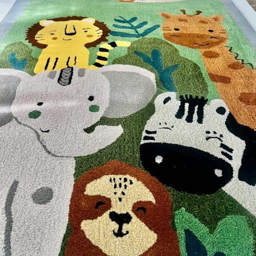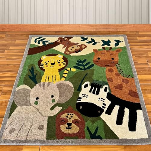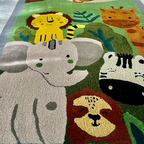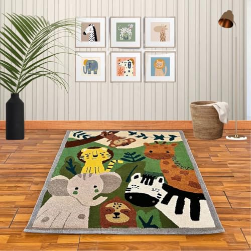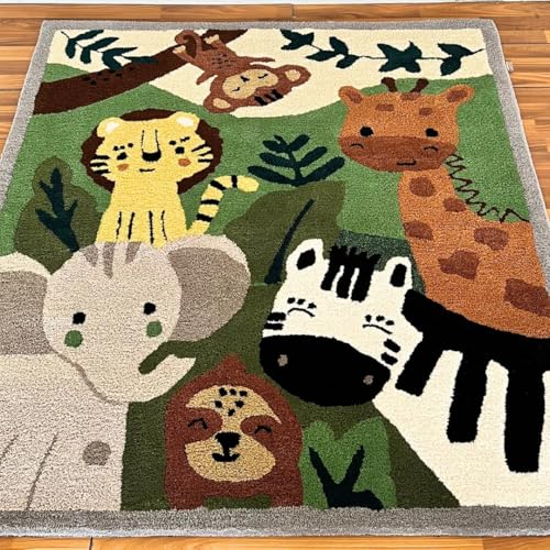 Carpetivity - سجادة أطفال بتصميم حيوانات الغابة، سجادة ناعمة معقودة بتصميم حيوانات الغابة المفعمة بالحيوية لخلق بيئة ممتعة لغرف نوم الأطفال أو غرف اللعب تنظيف جاف فقط. (1×1.6 م).