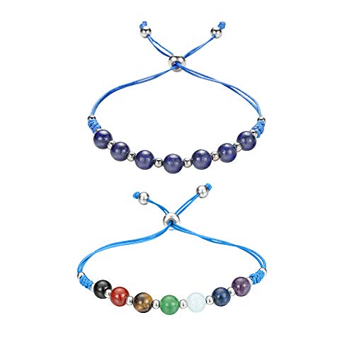 Generic - مجموعة اساور الاصدقاء للنساء والرجال من جونهان مكونة من قطعتين، مصنوعة من الاحجار الكريمة وتحتوي على 7 احجار شاكرا مع دلايات من الكريستال، تتناسب مع النساء والبنات وتُعد هدية مثالية للصديق المفضل