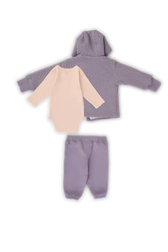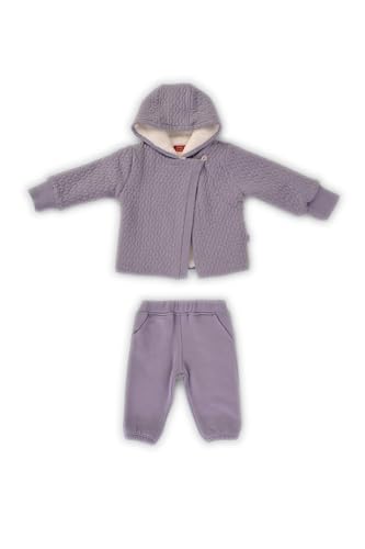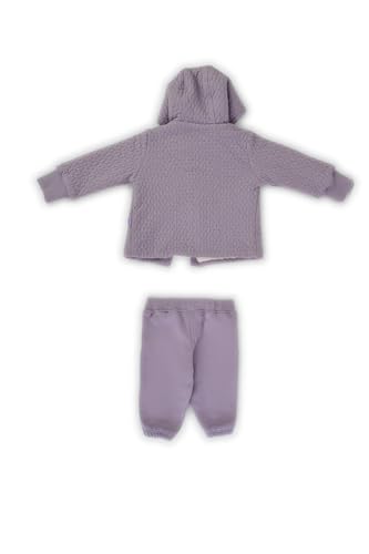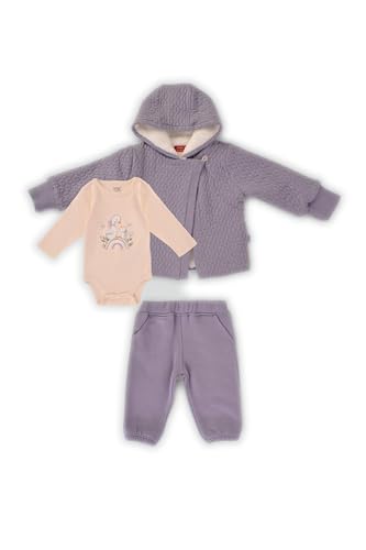 junior - سالوبيت للبنات البيبي بأكمام طويلة مع بنطلون بتصميم مطبوع لطيف وجاكيت بغطاء رأس وأكمام طويلة، مقاس 9 أشهر، طقم 3 قطع