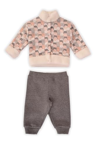 junior - طقم سالوبيت بأكمام طويلة وجاكيت بياقة فرو عالية بأكمام طويلة مطبوع وبنطلون للبنات البيبي من جونيور، ملابس نوم للرضع والأطفال الصغار