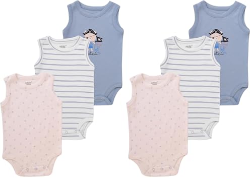 junior - جونيور طقم سالوبيت بكباسين بدون اكمام من القطن للاطفال البيبي من 6 قطع، 24 شهر