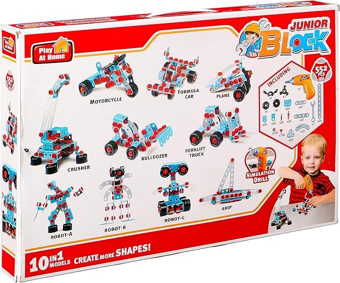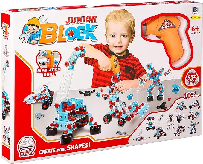 Generic - مكعبات بناء للاطفال الصغار لمحاكاة صنع مثقاب والمزيد من الأشكال، 552 قطعة، 10×1 موديل لعمر 6 سنوات فما فوق