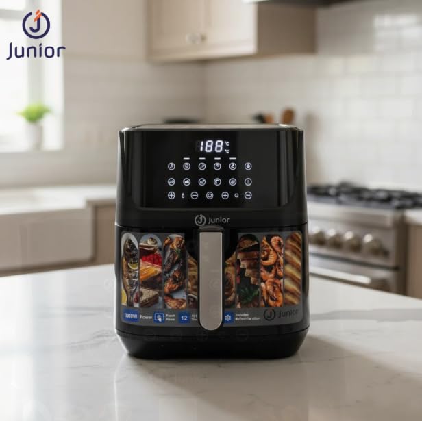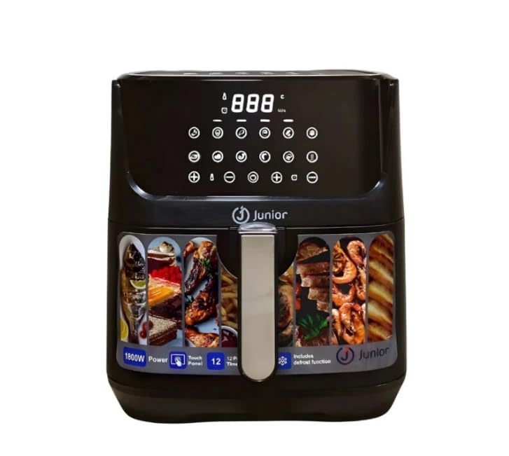Junior Imagine The Best - مقلاة هوائية ايه اف-2713 سعة 8 لتر 1800 واط من جونيور ايماجين، مقلاة رقمية خالية من الزيوت مع دوران هواء سريع وتحكم في درجة الحرارة قابل للتعديل
