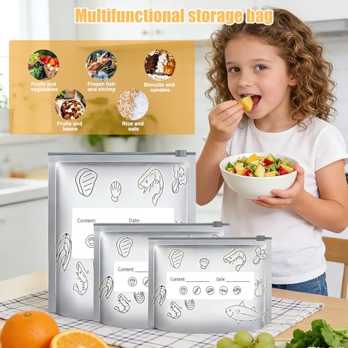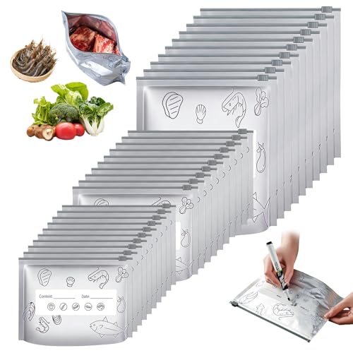 Junrvivy - عبوة من 120 كيس فريزر بسحاب من جونرفيفي، اكياس تخزين قابلة لاعادة الاستخدام وقابلة للغلق مصنوعة من رقائق الالومنيوم، للحوم والمأكولات البحرية والخضروات وحاويات تخزين الطعام