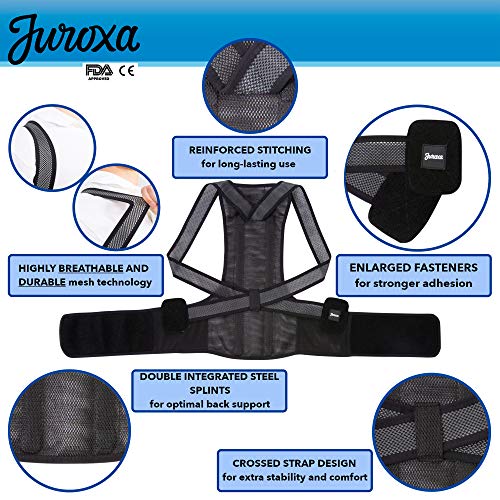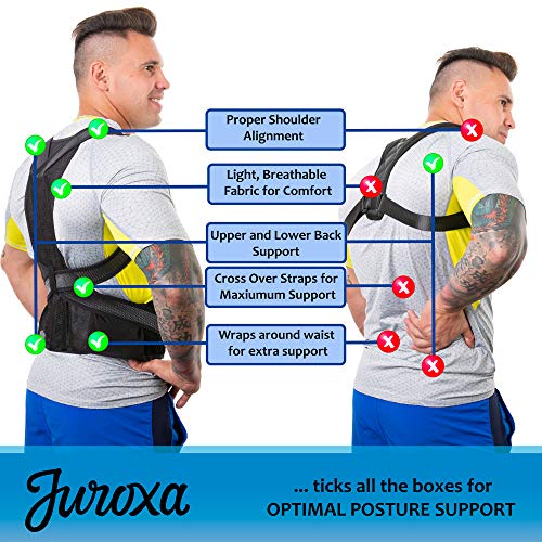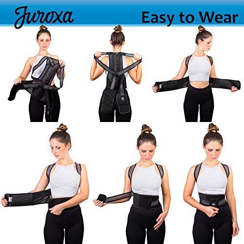 Juroxa - مصحح الموقف من جوروكسا للنساء والرجال - دعامة دعم الظهر بالكامل - تخفيف آلام الرقبة وأسفل الظهر