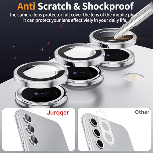 Jurqqer - واقي كاميرا سهل التركيب لموبايل سامسونج جالاكسي A16 / A16 بشبكة الجيل الخامس 5G، واقي مقاوم للخدش وثابت من الزجاج المقوى رفيع للغاية بدرجة صلابة 9 من خليط معدني من الألومنيوم بلون أبيض من جوركير