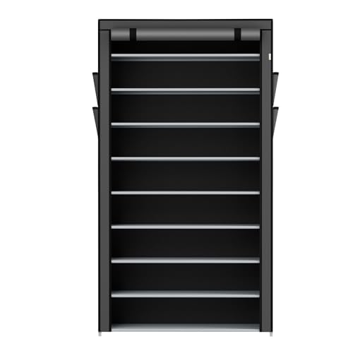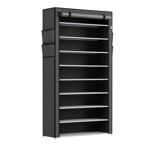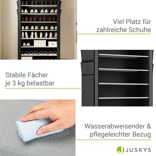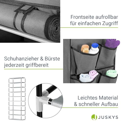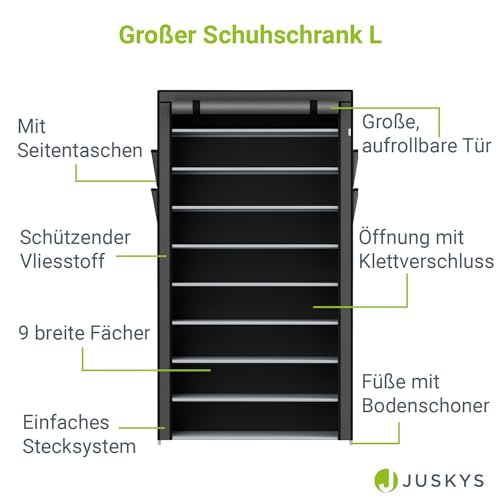 Juskys - جزامة أحذية من جوسكيس، رف أحذية مغلق يتسع لـ 45 زوج من الأحذية وبغطاء من القماش مقاوم للماء، خزانة أحذية من القماش بنظام التركيب مكونة من 9 مستويات، لون رمادي