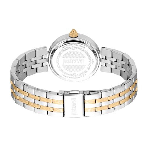 Just Cavalli - جست كافالي ساعة من الستانلس ستيل بلونين فضي وذهبي للنساء من انيمالير - JC1L314M0085، سوار فضي رمادي/ذهبي اصفر
