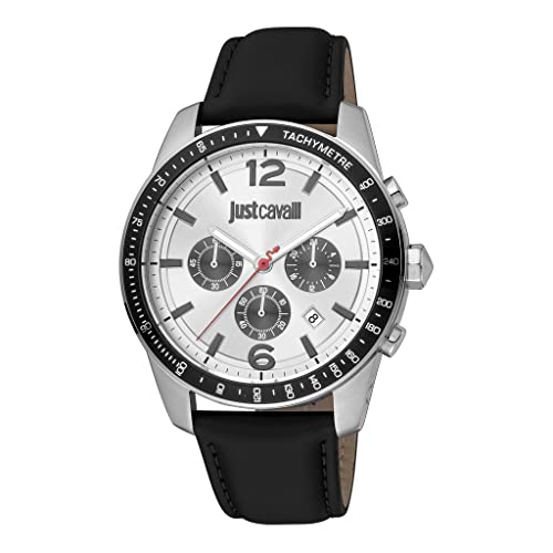 Just Cavalli - ساعة للرجال من جست كافالي، موديل JC1G204L0015، انالوج، بمينا فضي، بسوار أسود