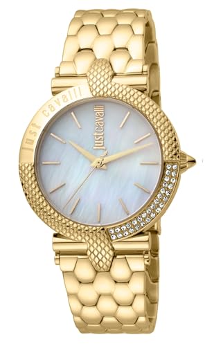 Just Cavalli - ساعة للنساء من جست كافالي، موديل JC1L105M0085، تناظري، بمينا أبيض، بسوار ذهب