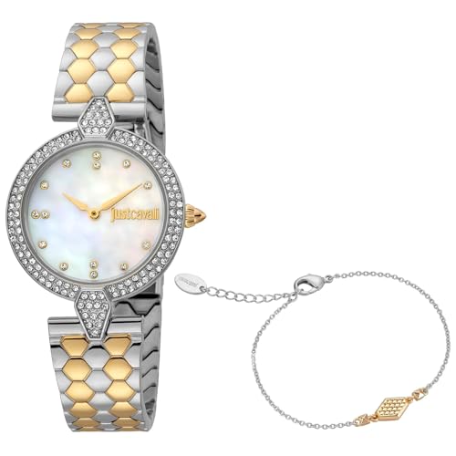 Just Cavalli - ساعة للنساء من جست كافالي، موديل JC1L159M0085، تناظري، بمينا أبيض، بسوار فضة