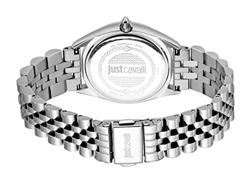Just Cavalli - ساعة يد كوارتز انالوج بسوار ستانلس ستيل للنساء من جست كافالي، موديل JC1L195M0345، أزرق غامق، عصرية