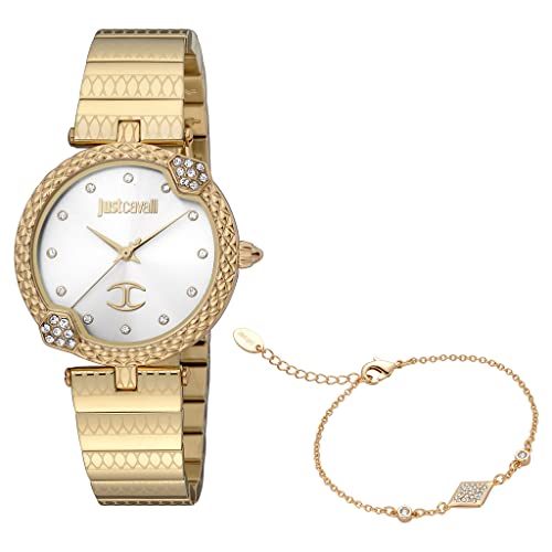 Just Cavalli - ساعة للنساء من جست كافالي، موديل JC1L197M0065، تناظري، بمينا فضة، بسوار ذهب