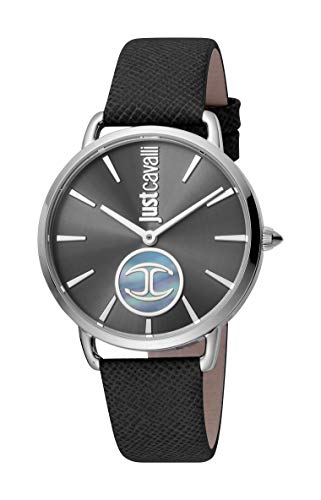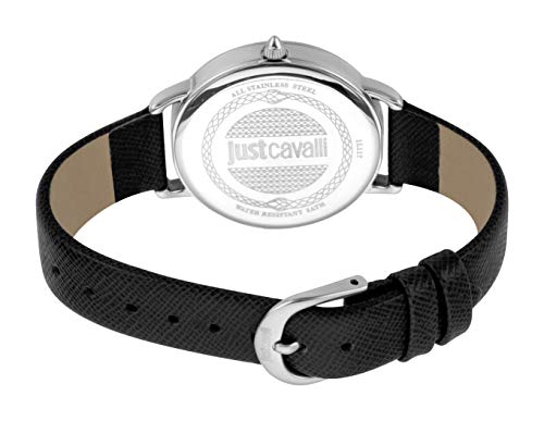 Just Cavalli - جست كافالي ساعة انالوج بعقارب ومينا اسود وسوار جلدي للنساء من لوجو - JC1L117L0015، متعددة الالوان