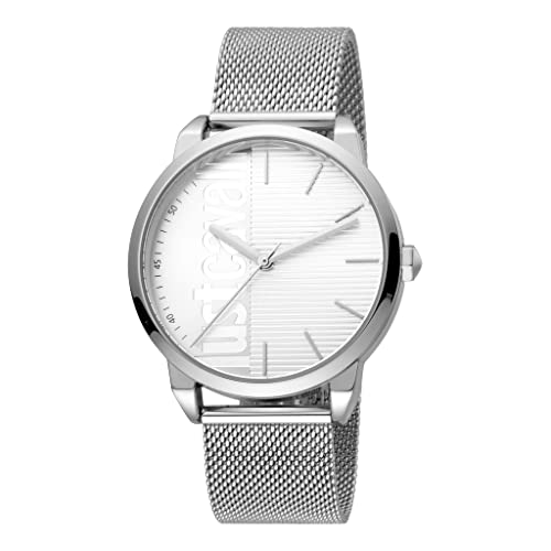 Just Cavalli - ساعة ستانلس ستيل مقاومة للماء دائرية انالوج بعقارب للرجال من جست كافالي - فضي