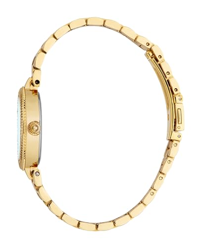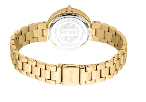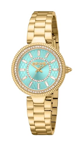 Just Cavalli - ساعة للنساء بسوار معدني ذهبي و3 عقارب مقاومة للماء حتى عمق 50 مترًا، هيكل ذهبي ومينا تركواز، من جست كافالي