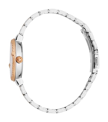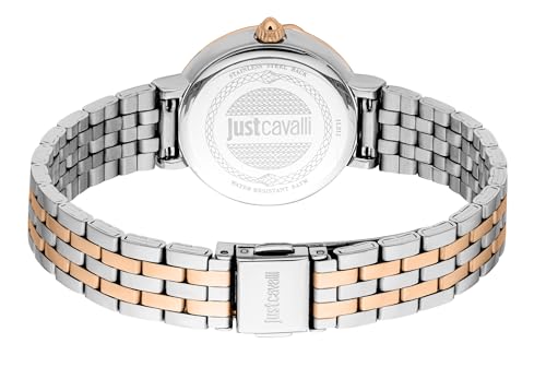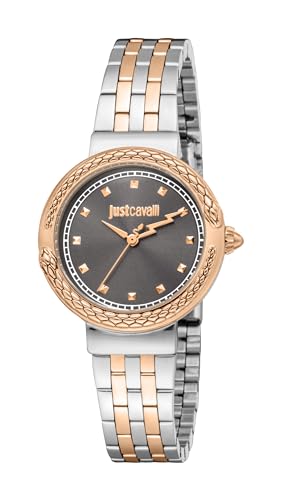 Just Cavalli - ساعة للنساء من جست كافالي، هيكل بلونين فضي وذهبي وردي، مينا رمادي داكن، سوار معدني بلونين فضي وذهبي وردي، 3 عقارب، قوة تحمل 3 بار