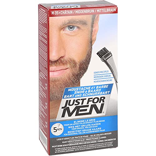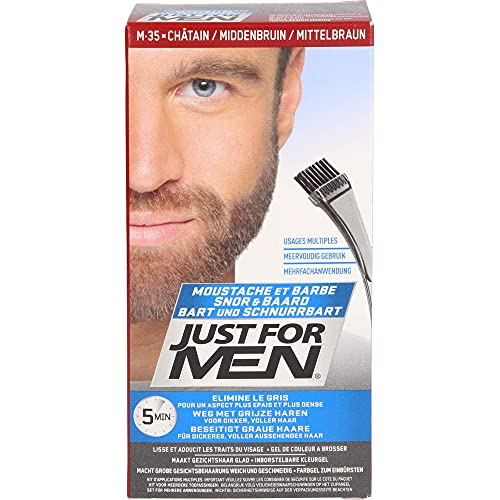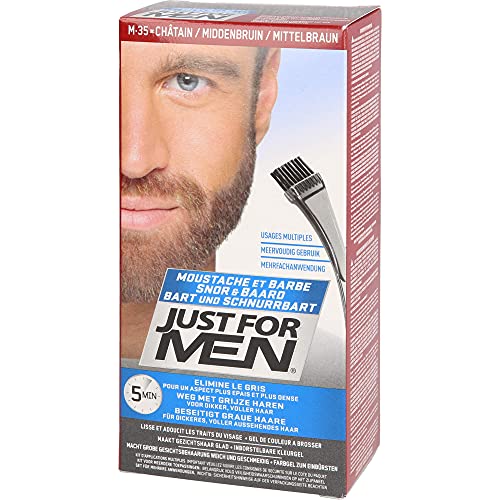 Just for Men - جست فور مين صبغة للشارب واللحية بلون بني متوسط تزيل اللون الرمادي للحصول على مظهر أكثر سمكا وامتلاء- M35