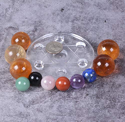 • حجر كريم طبيعي، أبعاد المنتج: مواد الكرة الجانبية: زجاج بركاني أسود. اميثيست. لازورد. اليشب الأحمر. كوارتز وردي. حجم حجر الافينتورين الأخضر: حوالي 20 ملم لكل 8 بوصة مواد الكرة المركزية: الكالسيت الحجم: حوالي 30 ملم 1.2 بوصة، الوزن التقريبي 173-176 غرام/المجموعة
