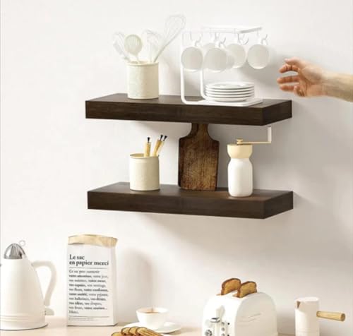 Just like this - مجموعة من 2 رف عائم من الخشب الطبيعي - ارفف حائط عميقة لغرفة النوم - ارفف حمام لجدار الغرفة - رف عائم للمطبخ - ارفف من خشب البلوط الذهبي - عمق 16 × عرض 6 × ارتفاع 1.20 انش (خشب الجوز الداكن)