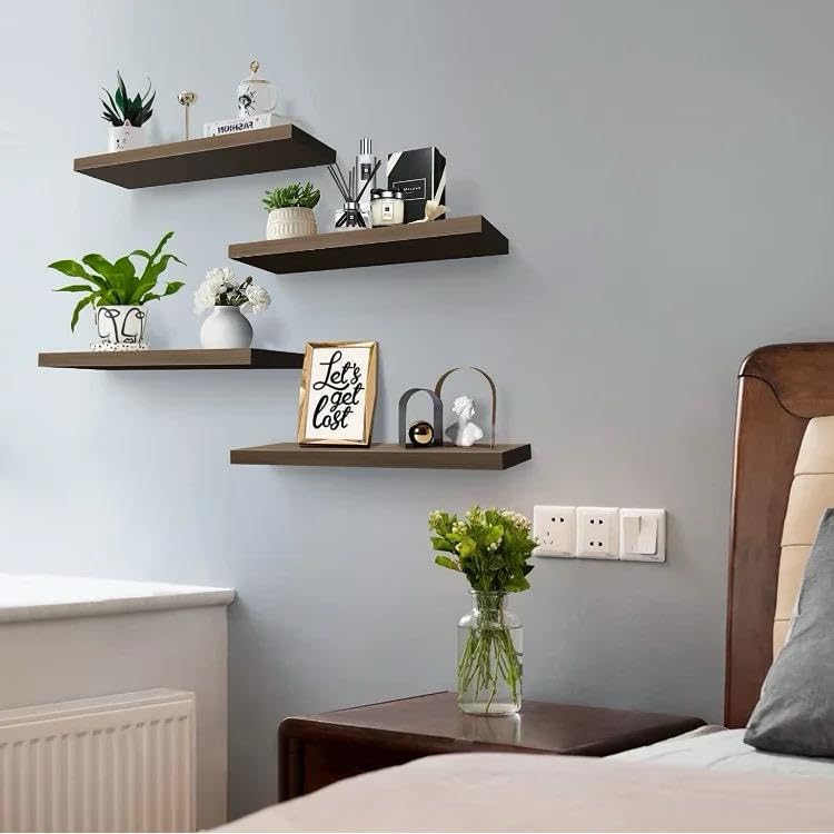 - تخزين وديكور مذهلين - يمكنك عرض التذكارات أو الأعمال الفنية وتخزين الكتب والجاز في مطبخك وحمامك والمزيد مع الرفوف العائمة من خشب الجوز!