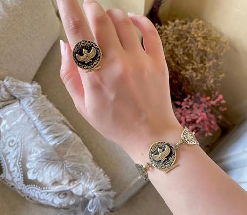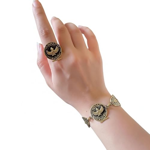 Generic - مجموعة مجوهرات نحاسية مجنحة مصرية من جست سالم، سوار وخاتم قابل للتعديل بلون ذهبي عتيق، مجوهرات بطابع فرعوني للنساء.